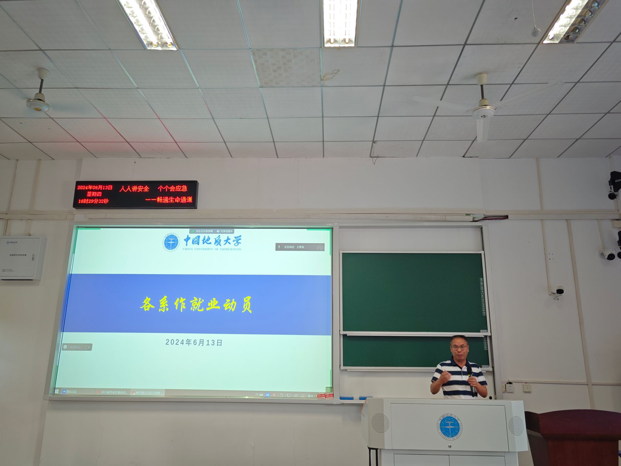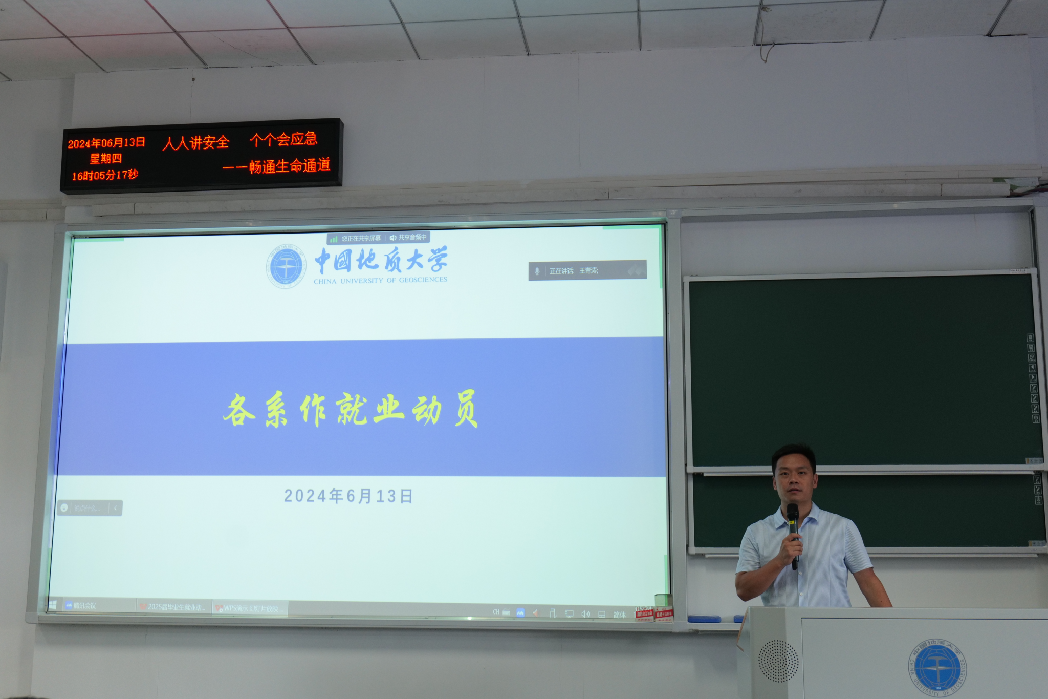 6月13日下午,伟德国际bevictor2025届毕业生就业动员大会在西区教三楼208教室顺利举行。公司党委书记张宽裕、党委副书记龚丽、公司副经理朱江洪,土地资源管理系主任方世明、公共行政系主任李晓玉、法学系副主任宋冬冬,应急管理系书记黄砺,2025届研究生辅导员王青涛,2025届毕业年级班主任罗辉,张士菊,陈星出席会议。会议由2025届本科生毕业生辅导员李姝慧老师主持。