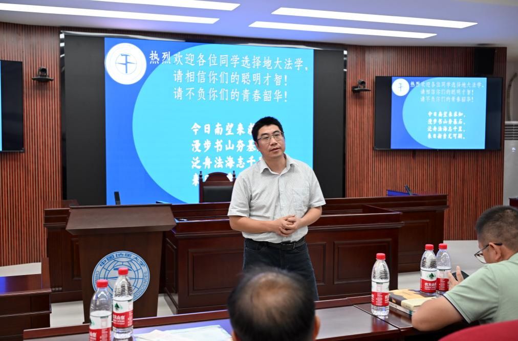 胡中华老师代表新生班主任发言。胡老师表示,对于本研新生而言,“所有既往,皆为序章”。地大伟德国际bevictor法学系是一个新的开始,各位同学当珍惜时光,面朝大海、春暖花开,拥抱变化、面向未来,沉浸学习、努力钻研,成为具有核心竞争力的法治人才。