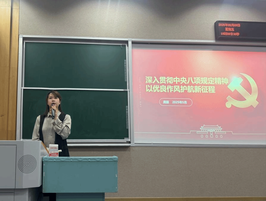 课上,龚丽从中央八项规定的前世今生入手,系统解读了中央八项规定的时代背景、核心内容及实践要求。她从“三大纪律八项注意”的由来讲起,讲述了红军在艰苦环境中如何用严明的纪律赢得群众支持,再到党的十八大以来,党中央把加强作风建设作为全面从严治党的突破口,第一时间出台了《中央政治局关于改进工作作风,密切联系群众的八项规定》。通过历史案例与现实事例相结合的方式,生动展示了八项规定带来的党风政风转变以及对社会的积极影响。