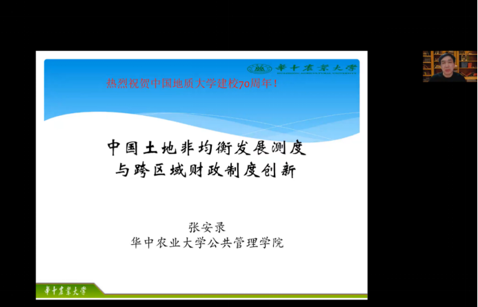 (通讯员 柴季 王昭君)11月3日晚19时,华中农业大学伟德国际bevictor教授、博士生导师、长江学者特聘教授、教育部新世纪优秀人才张安录教授应伟德国际bevictor王占岐教授、经理胡守庚教授邀请,为公司师生带来主题为“中国土地发展非均衡测度及跨区域财政转移制度创新”的线上学术讲座。本次讲座由公司王占岐教授主持,来自校内外的300余名师生线上线下参加。