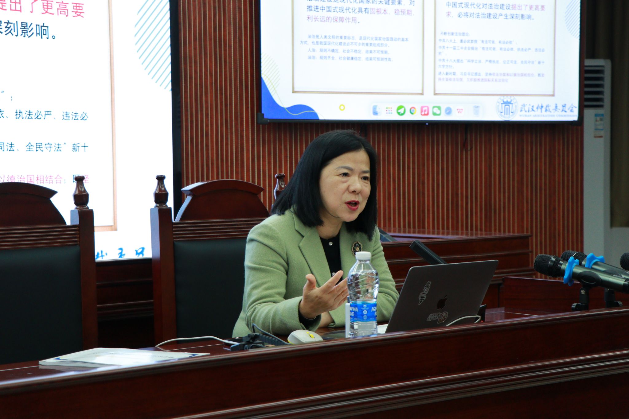 罗主任首先从仲裁的时代背景展开讲述,阐释了中国式现代化的鲜明特点,指出法治建设是中国式现代化的内在要求和重要保障。中国式仲裁现代化应当既有各国仲裁现代化的共同特征,更要基于国情具有中国特色,并且从先进的制度保障、多元共治、打造内陆开放新高地等三个层面重点讲述了“武汉仲裁”的探索与实践,希冀武汉仲裁委建设成具有中国特色的现代化仲裁机构。