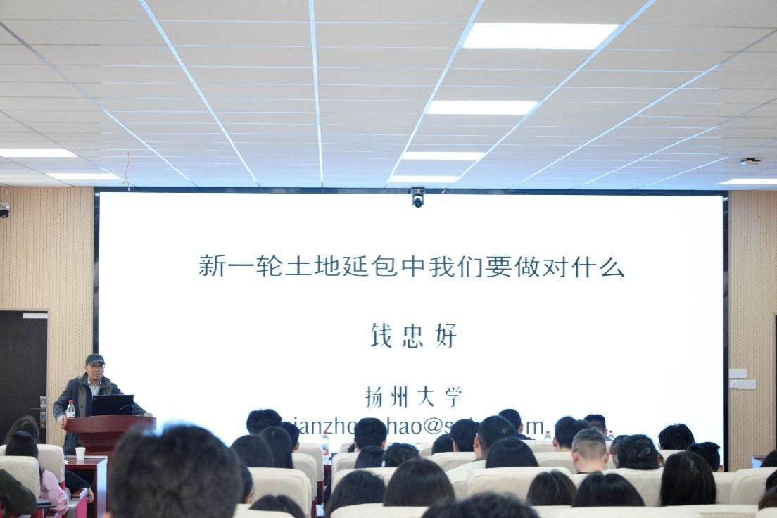 3月24日下午,应伟德国际bevictor土地资源管理系杨剩富副教授邀请,扬州大学商公司钱忠好教授做客公司“公管大讲堂”,以“新一轮土地延包中我们要做对什么”为题开讲。杨剩富主持讲座,讲座吸引百余名师生参加。