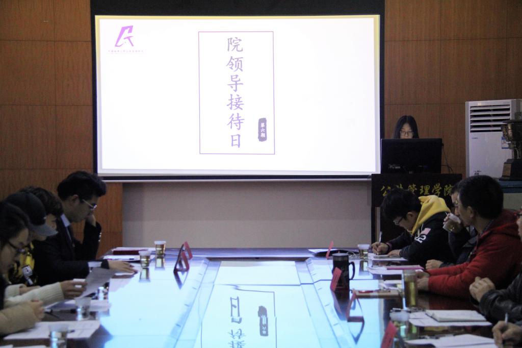 (通讯员 吴 波)2018年12月13日下午,第六期院领导接待日活动在公管楼B209会议室顺利举行。公司党委书记张吉军老师、党委副书记刘国华老师、副经理王忠老师、法学系副主任刘琦老师、公共行政系主任李世祥老师、区划系主任刘超老师、土地系刘成老师、教务科高秋丽老师、团委副书记李姝慧老师、辅导员吴波老师以及各年级同学代表50余人参加本次活动。