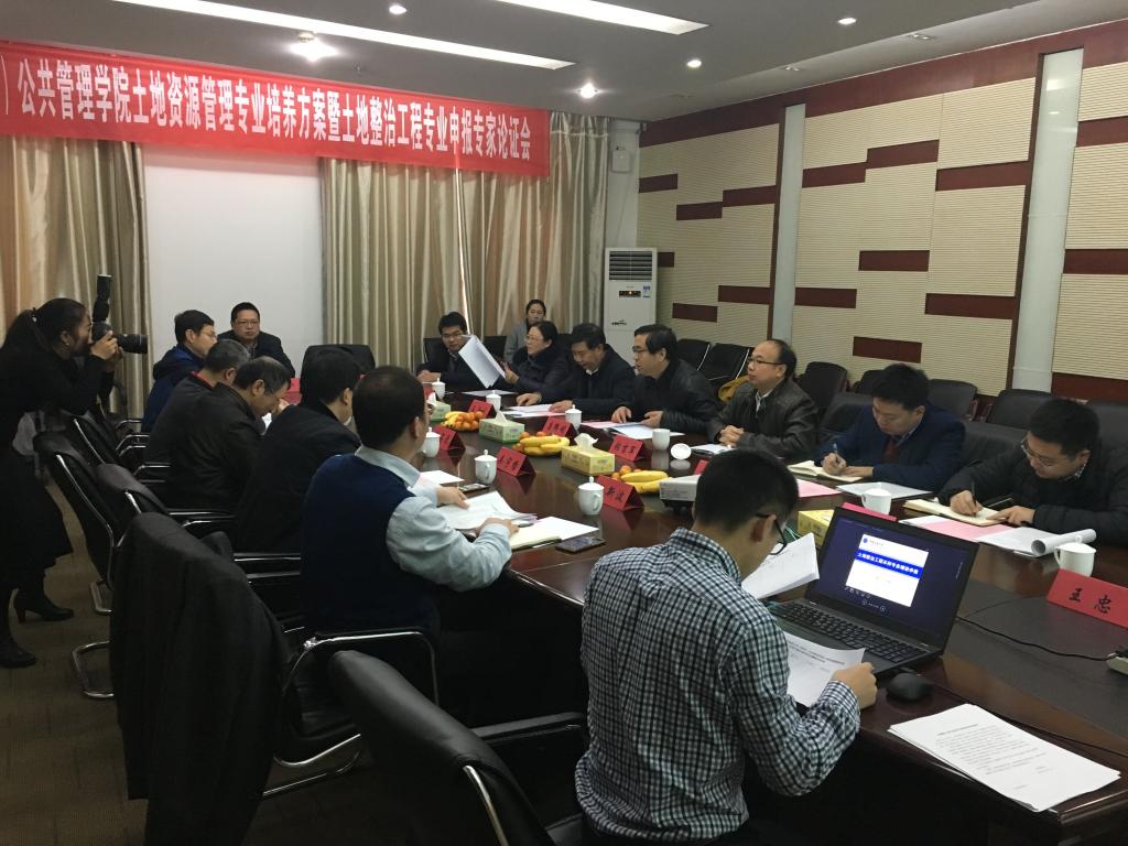 (通讯员 向敬伟)12月23日,土地资源管理专业培养方案暨土地整治工程专业申报专家论证会在东区迎宾楼召开。中国人民大学张占录教授、浙江大学吴宇哲教授、华中科技大学谭术魁教授、武汉大学焦利民教授以及自然资源部人力资源开发中心杜新波研究员担任论证评审专家。公司党委副书记唐辉明、宣传部部长胡守庚、教务处副处长庞岚、学工处副处长朱继,公共管理公司党委书记张吉军、经理王占岐、副经理龚健、副经理王忠,以及土地资源管理系全体教师和员工代表参加会议。王占岐经理主持会议。