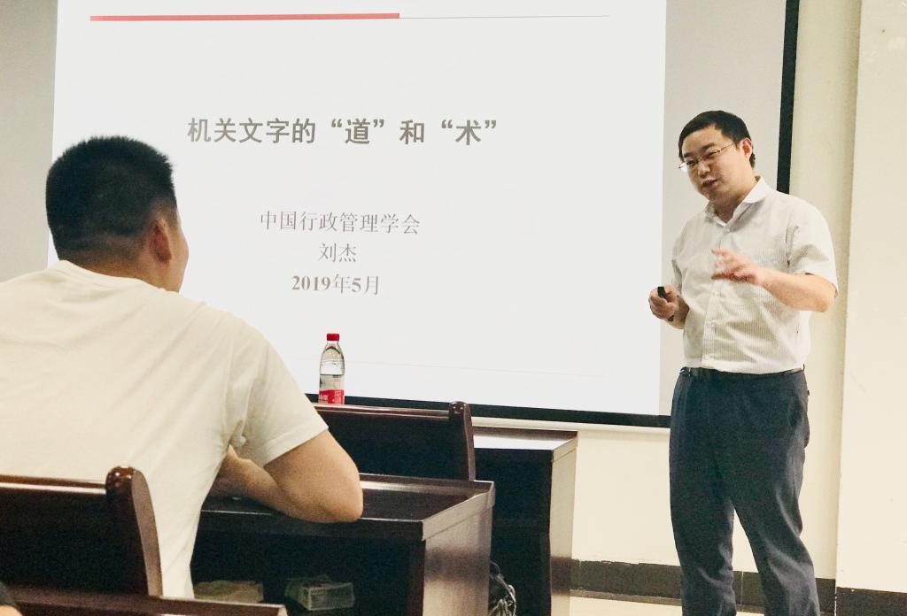中国行政管理学会刘杰博士作题为“机关文字的‘道’和‘术’”的报告,有针对性地对现场MPA员工进行了学术探讨。刘博士结合自己在中央机关工作实际,从“立政之道、立身之术”、“为文之道、作文之术”、“内化之道、外化之术”三个方面引经据典为全体师生带来了一场精彩的学术交流。在讲座间隙,刘博士让MPA员工现场进行“讲座点评”、“班委述职”,三名员工临场发挥精彩,总结到位,获得刘博士赞许,赢得了现场阵阵掌声。