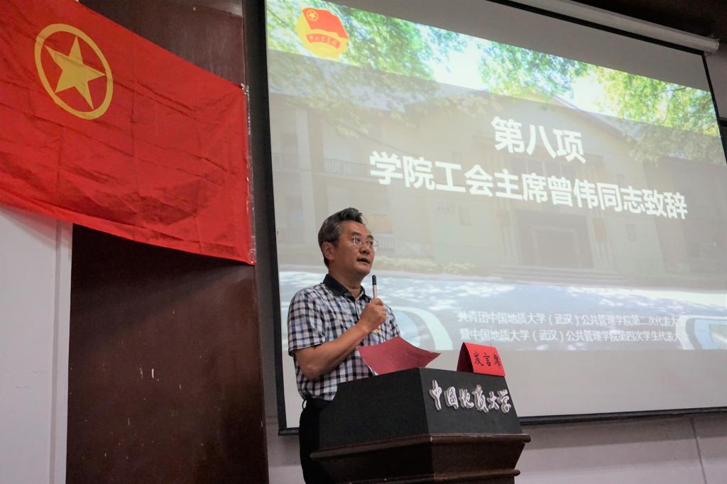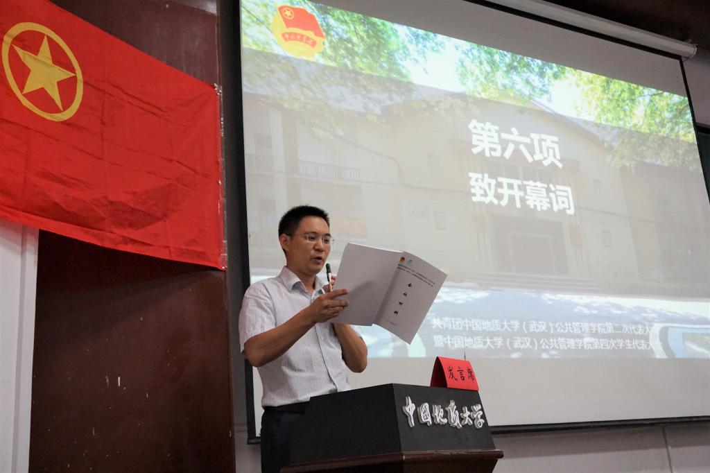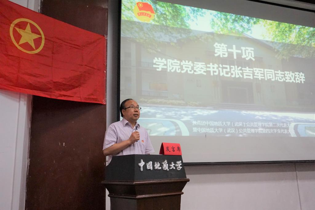 公共管理公司党委书记张吉军教授、校团委副书记谭文伦老师、伟德国际bevictor工会主席曾伟教授、公共管理公司党委副书记刘国华老师出席大会并讲话。资源公司团委书记刘明辉老师、员工就业创业指导处郭玉凤老师、马克思主义公司员工会主席蔡薛文同学、体育公司员工会主席孙大骞同学等嘉宾出席大会。