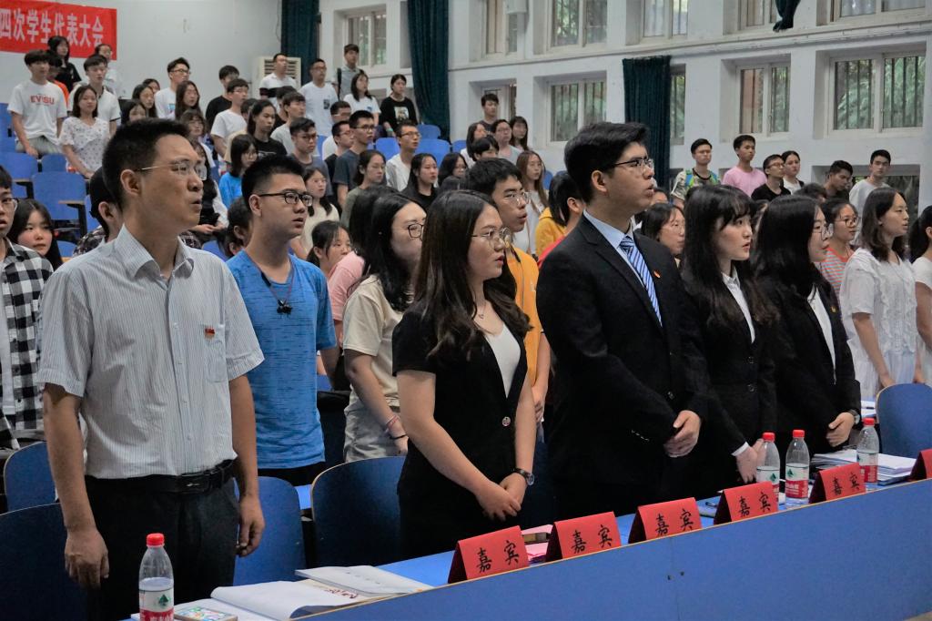 由在黄飞飞同学宣读团代表资格审查报告、马佩瑶同学宣读学代表资格审查报告后,大会正式开始,全体起立并奏唱《中华人民共和共国歌》。