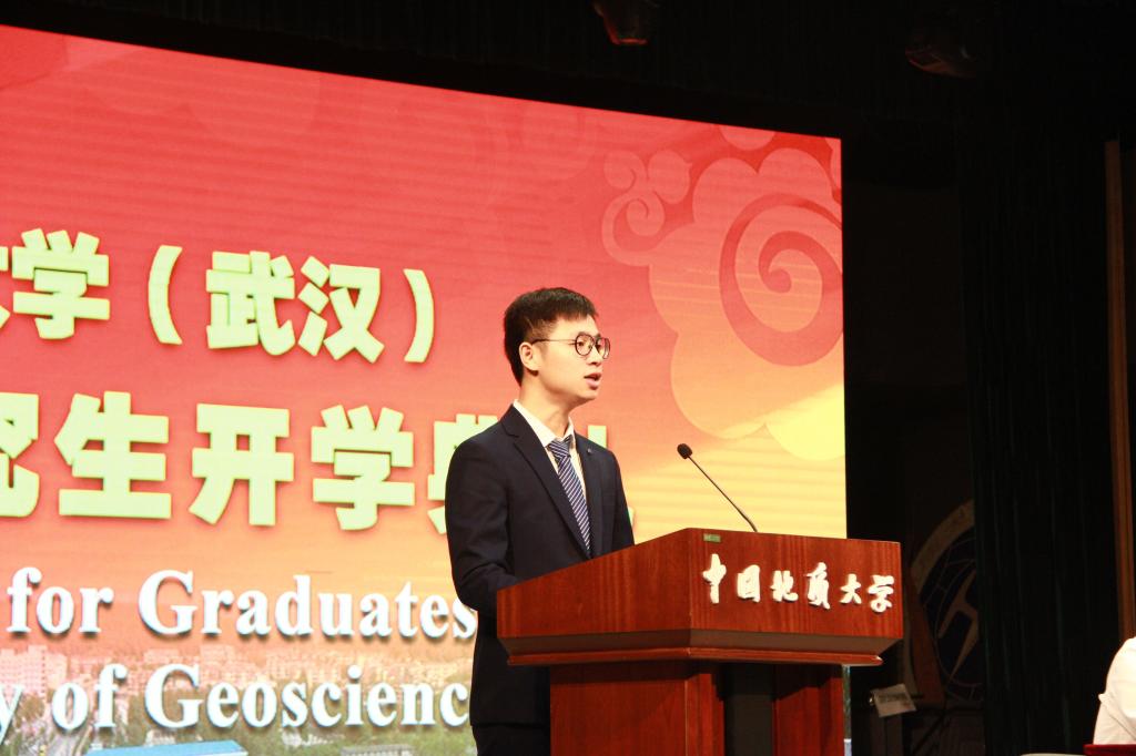我是来自公管公司土地资源管理专业的研究生黄威,很荣幸在这与大家分享自己在地大的经历和体会。昔日追梦赤子心,今朝相聚喜相迎,首先我代表所有老生欢迎欢聚于此的地大新主人们,欢迎你们的到来。对于大家而言,今天将是人生攀登学识高峰的又一个起点,淳朴而美丽的地大校园,将会是大家成功路上的铺路石,也将成为我们一生中心灵的归属。