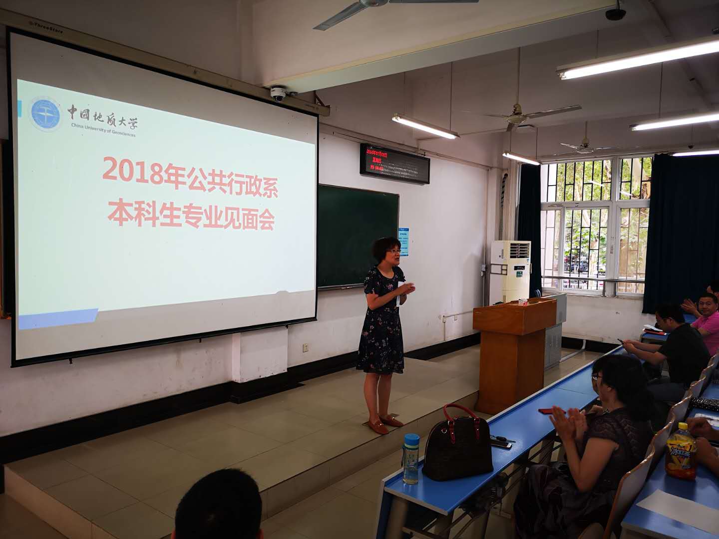 此次见面会共分为本科专业介绍会和研究生专业介绍会两个环节。本科专业介绍会由我系分管本科生教学的张士菊副教授主持。我系系主任李世祥教授首先介绍了公共行政系的专业设置和学科概况;随后,田家华教授、马向平教授、李晓玉副教授、谢小青副教授、王忠副教授分别就创新创业训练、平衡学习与休闲、学习方法分享、未来政府领导人塑造、复合型人才培养等问题进行了经验分享。