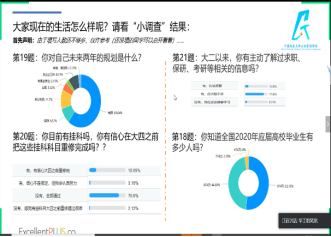 会议的第二部分,吴波老师与2018级全体同学进行分享交流。通过回顾同学们过去的老员工活以及疫情期间的学习生活状况,吴波老师细致地分析了大家的学习生活状况,鼓励大家要在未来的两年中砥砺前行。吴波老师从学习、生活、未来规划三个方面为大家提出建议:在学习方面,吴波老师以大家两年的绩点趋势图为切入点,告诉大家成绩是核心竞争力,希望同学们认识到学习的重要性;在生活方面,吴波老师为大家在疫情期间的积极学习状态而欣慰,提醒同学们在家要做到慎独自律,时刻保持清醒;在未来规划方面,吴波老师希望大家能够充分认识自我,明确自己的未来规划。最后,吴波老师寄语大家要珍惜时间,对自己的未来负责,在成长的道路上能够不负青春时光。