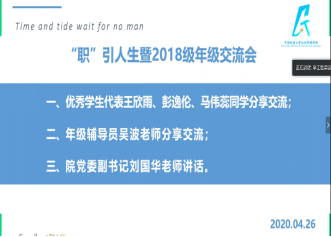 4月26日19:00,2018级本科生年级线上交流会在腾讯会议平台召开。公司党委副书记刘国华老师、辅导员吴波老师、2018级本科生全体同学参加本次交流会。本次交流会特别邀请高年级优秀学长学姐代表王欣雨、彭逸伦、马伟蕊做成长分享。交流会由吴波老师主持。