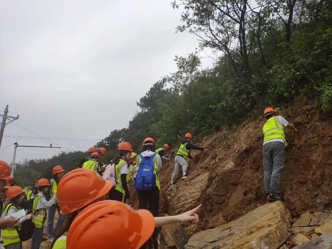实习的故事从秭归基地的岩石园开始,我们在三大岩标本中驻足学习,通过老师的讲解,我们聆听并走近岩石的世界,每一块岩石标本都像是一本书籍,打开书页,阅读岩石标本上的“文字”,感受亿万年的沧海桑田。