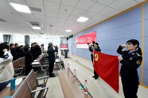 活动第二项,在鲜红的党旗和团旗下,在场党员及团员重温入党誓词/入团誓词,铮铮誓言,一字一句,庄严肃穆。