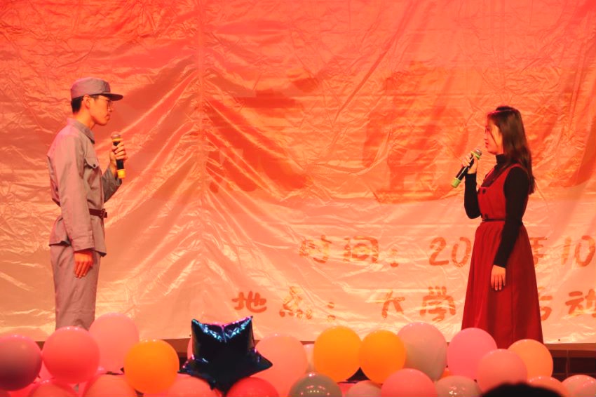 17G212班同学们带来的舞蹈串烧《失恋苹果吹满地》可谓是将流行热曲舞动出了青春绚丽之风采,为同学们呈现了全新的视觉体验。随后,由研究生带来的歌曲串烧《爱要坦坦荡荡+雅俗共赏》则将美妙悦耳的旋律展现给大家,让大家不由自主地齐声哼唱。