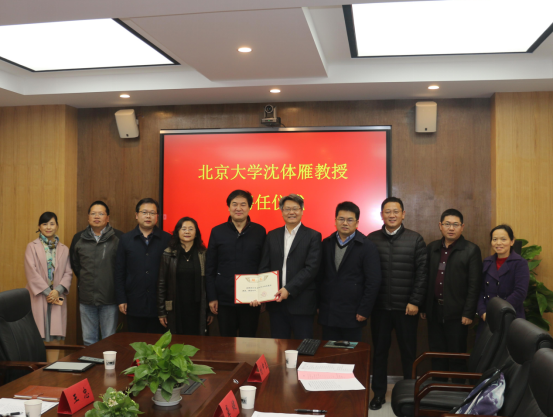 副经理才惠莲介绍了公司和公司的基本情况,公司党委书记张宽裕,对沈体雁教授担任公司的兼职教授表示热烈欢迎。沈体雁教授现为北京大学政府管理公司教授,博士生导师,城市治理研究院执行经理,首都发展研究院副经理,北京大学科学与工程计算中心、北京大学海洋研究院双聘教授。担任中国区域科学协会副理事长、中国经济社会理事会理事、住建部科学技术委员会科技协同创新专业委员会委员等社会职务。曾在美国夏威夷大学、哈佛大学、加州大学伯克利分校、伊利诺斯大学厄巴纳-香槟分校以及美国中西方研究中心做访问学者。曾任《中国区域经济》杂志编辑部主任,世界银行城市发展战略培训专家,《Environmental Planning》(B)、《Landscape and Urban Planning》和《Annals of the Association of American Geographers》等杂志匿名评审人。