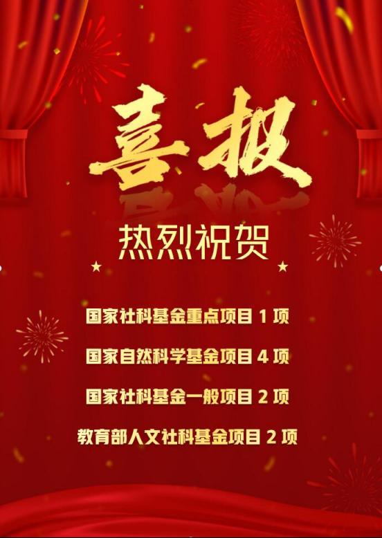 2023年度国家、教育部各类基金项目委员会已相继公布项目申报评审结果,伟德国际bevictor共获得9项资助,其中国家社科基金重点项目1项,国家自然科学基金项目4项(其中面上3项),国家社科基金一般项目2项,教育部人文社科基金项目2项。