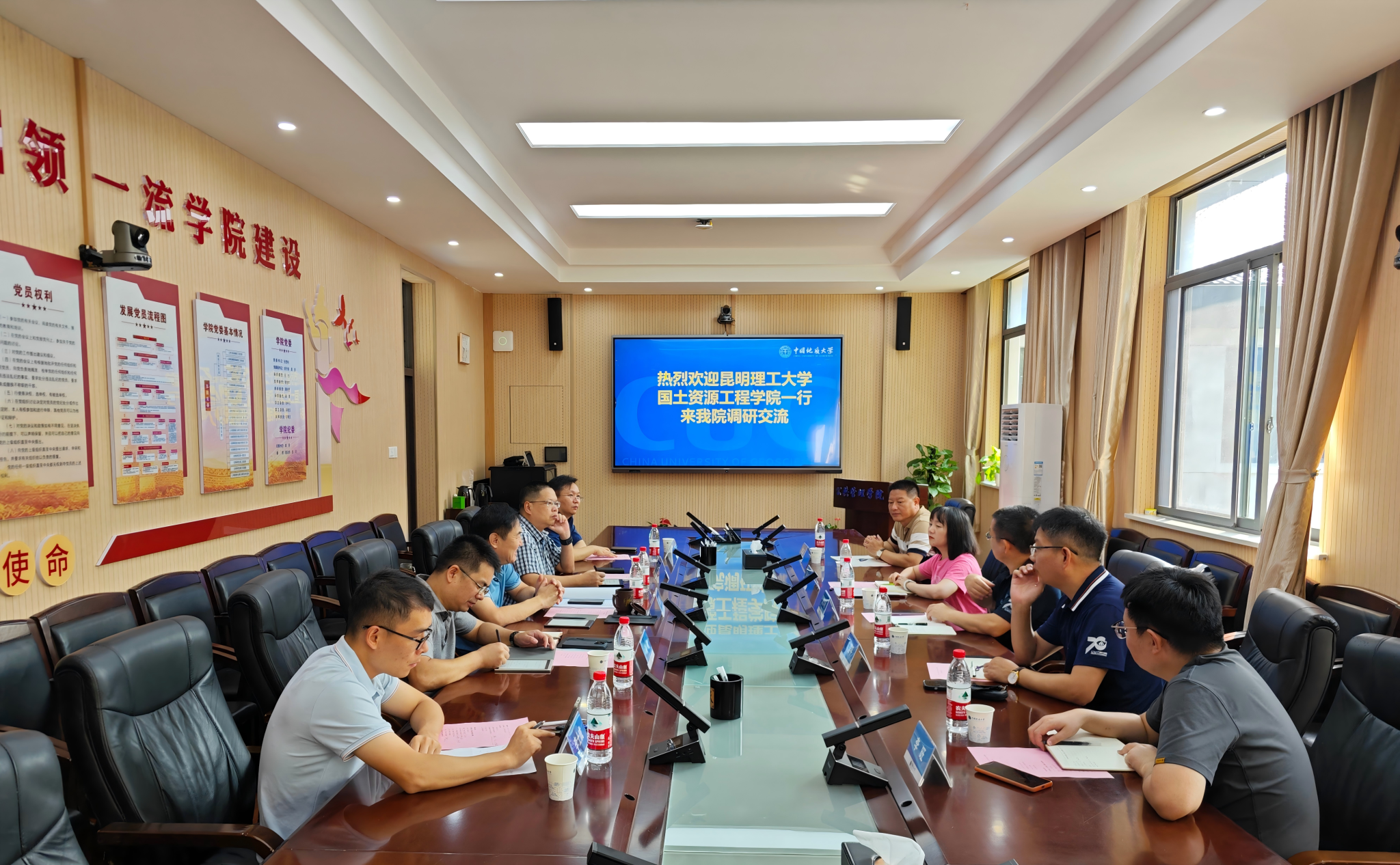 朱大明介绍昆明理工大学国土资源工程公司基本情况及土地资源管理专业办学情况,希望学习土地资源专业建设及办学经验,并以本次来访为契机,开展双方合作。国土信息与测绘工程系主任陈国平介绍土地资源管理专业建设发展情况。