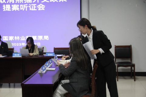 在材料准备阶段,同学们在授课老师的指导下,根据自身兴趣、结合时政热点选择听证会展示主题,并利用课余时间收集整理有关资料(听证会的基本信息、具体流程、注意事项、参会人员相关要求等)。接着各小组分别构思策划听证会开展形式与内容(听证会发言主题选择、发言稿撰写、组内成员角色分配及任务分工等)。