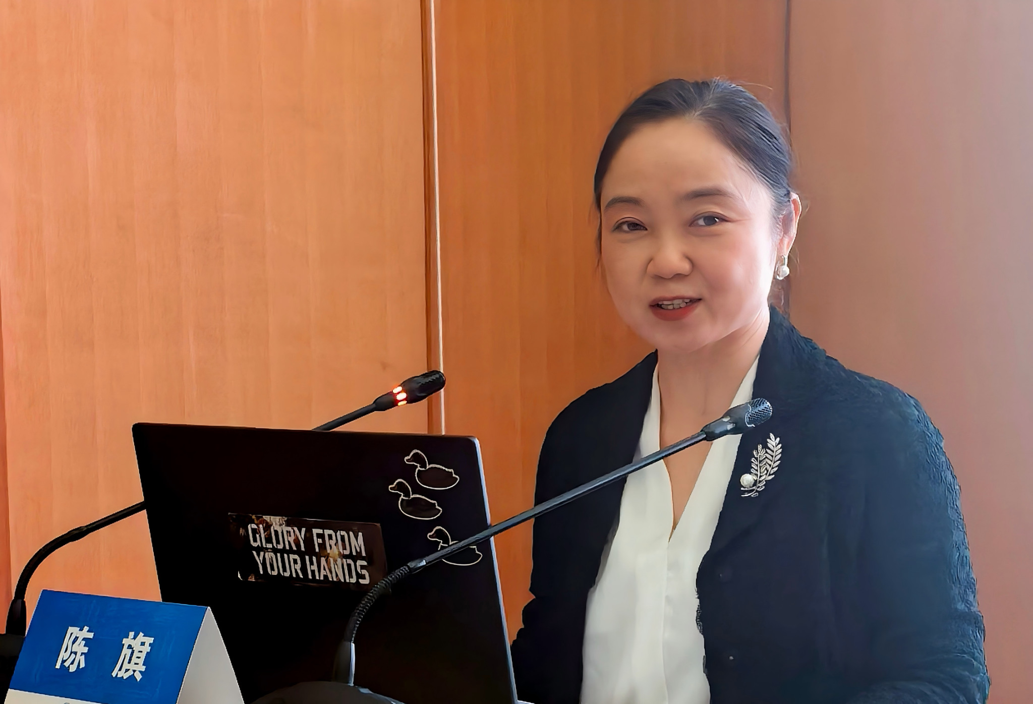 湖北省高级人民法公司党组成员、副经理陈旗致辞。她提到,青年学者是环境法学的希望所在,应站在人类文明高度去考量环境法学问题,同时在宏观和微观层面上不断探索,在生态环境法典编撰的时代,找到个人事业与人生的应许之地。