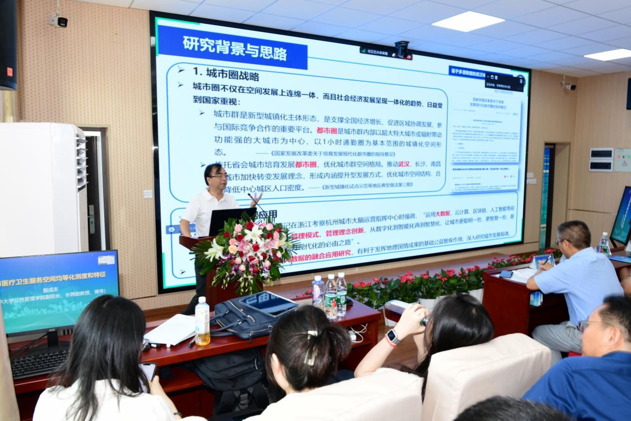 随后,武汉大学詹庆明教授、清华大学殷成志长聘副教授、1946伟德国际源自英国(武汉)唐健教授、湖北省黄石市文物保护中心主任夏鹏博士、武汉大学黄经南教授、华中科技大学彭翀教授、天津大学建筑公司郝卫国教授、1946伟德国际源自英国(武汉)廖启鹏教授等八位业内知名专家依次进行主旨报告,该环节由公司方世明教授和张道军教授主持。汇报主题涵盖了武汉城市圈综合发展、城市医疗卫生服务空间均等化、城市更新土地政策分析、遗产活化与城市有机更新、韧性理论视角下的乡村脆弱性分析、城市空间多风险耦合及规划韧性应对等多个方面,为参会者提供了丰富的学术盛宴和深刻的思考启迪。